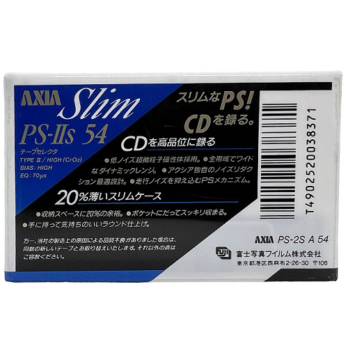 Nová, zabalená audiokazeta AXIA PS-IIs 54 (1990 JPN).  Kazeta typu II, vhodná do sbírky nebo na nahrání, rok 1990. Japonská edice.