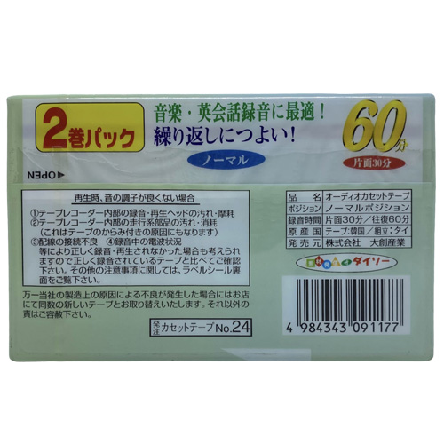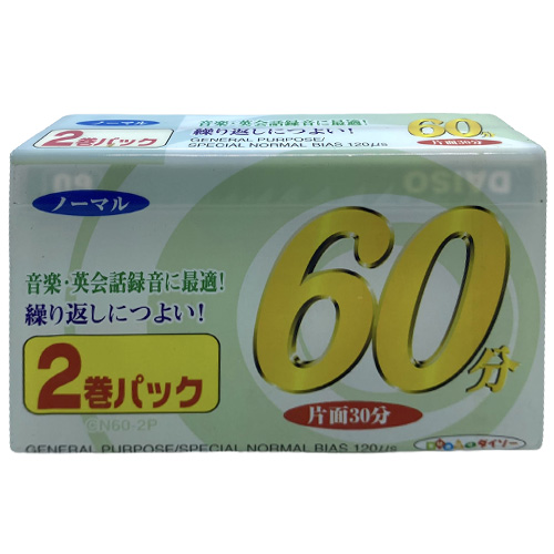 Nové audiokazety DAISO 60 (2pack).  Kazety typu normal, vhodná na nahrávání. Japonská edice.
