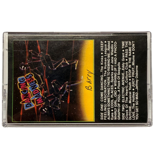Použitá originální MC kazeta DANCING MADNESS. Kompilace Dancing Madness je výbušným výběrem toho nejlepšího, co hýbalo evropskými i světovými kluby na přelomu 80. a 90. let. Tato kazeta je esencí éry, kdy taneční hudba začala dominovat hitparádám a přinášela nevídanou kombinaci popu, houseu a raného techna.