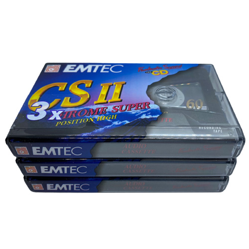 Nové zabalené audiokazety EMTEC CS II Chrome super  v AKCI 3 pack. Typ chrome, špičková kazeta pro nahrávání.