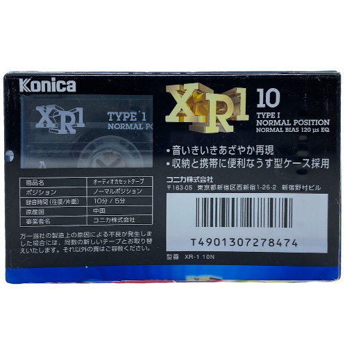 Nová, zabalená audiokazeta Konica XRI 10. Made in Japan. Vzhledem k minutáži vhodná spíše jen do sbírky minutáží.
