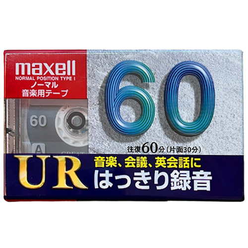 Nová, zabalená audiokazeta MAXELL UR60 (Japan).  Kazeta typu normal, vhodná na nahrávání.