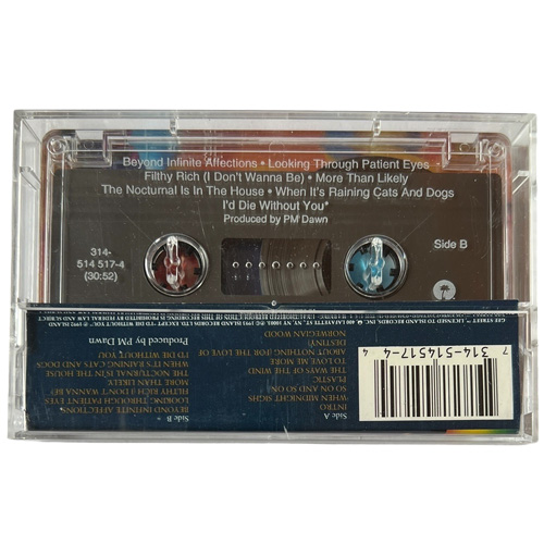 Použitá originální MC kazeta P.M. DAWN – The Bliss Album. Druhé studiové album britsko-amerického dua, které na začátku devadesátých let definovalo snový, psychedelický přístup k hip-hopu a R&B. Kazeta obsahuje obrovský hit „Looking Through Patient Eyes“ (postavený na samplu George Michaela) a úspěšnou spolupráci s Boy Georgem „More Than Likely“.