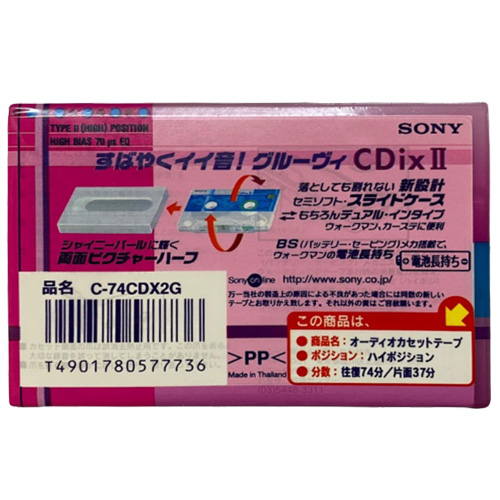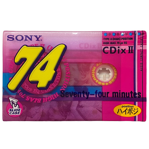 Nová, zabalená audiokazeta SONY Cdix II 74 (1999 JPN). Kvalitní kazeta typu II „chromka“. Vhodná do sbírky i na nahrání. Japonský edice.
