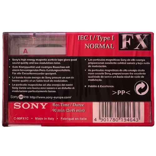 Nová, zabalená audiokazeta SONY FX 90. Kazeta typu normal, vhodná na nahráni. Pozn.: horší stav fólie.