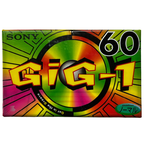 Nová, zabalená audiokazeta SONY Gig-1 60. Audiokazeta Sony GiG-1 60 z japonské edice roku 1995 je stylový model typu Normal, určený pro dynamický a čistý zvuk. Díky unikátní délce 70 minut a kvalitnímu pásku je ideální pro nahrávání delších alb s důrazem na věrnost podání.
