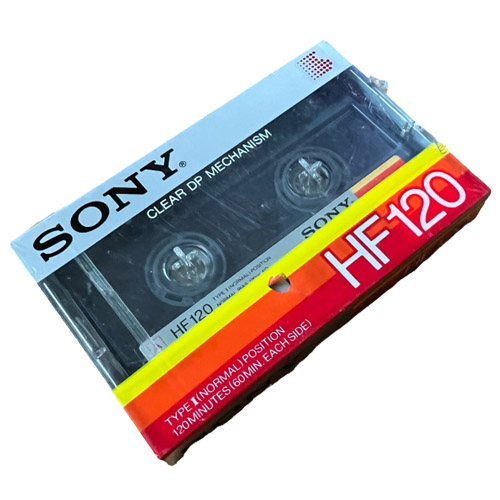 Nová, zabalená legendární audiokazeta SONY HF 120 z roku 1985. Vhodná na nahrání z důvodu potrhané fólie, viz foto.