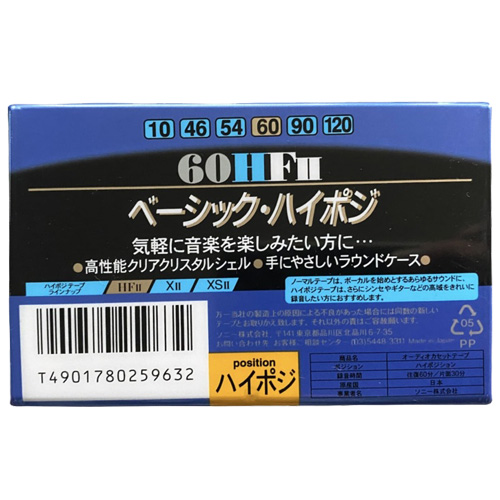 Nová, zabalená audiokazeta SONY HFII 46 (1994-95 JPN). Kazeta typu II, vhodná do sbírky i na nahrání. Japonská verze.