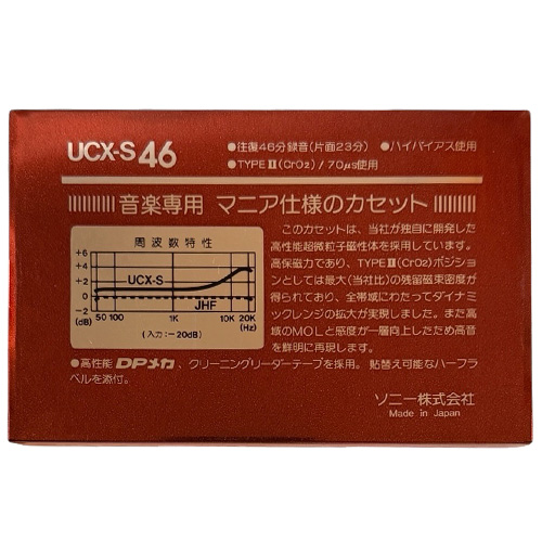 Nové, zabalené audiokazeta SONY UCX-S 46 (1982-84 JPN). Sony UCX-S 46 je prémiová kazeta typu Chrome, která ve své době definovala standardy pro analogový záznam. Disponuje precizní mechanikou DP pro stabilní chod pásku a vylepšenou vrstvou oxidu kobaltu pro minimální šum a vysokou citlivost. Ideální volba pro náročné posluchače, kteří hledají autentický zvuk 80. let v té nejvyšší kvalitě.