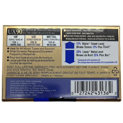 Nová zabalená audiokazeta SONY UX 90 (1992-94 US). Typ chrome, kvalitní „chromka“ vhodná na nahrávání.