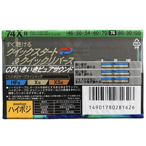 Nová, zabalená audiokazeta SONY X II 74. Vhodná do sbírky i na nahrání, rok 1997 Japonsko.