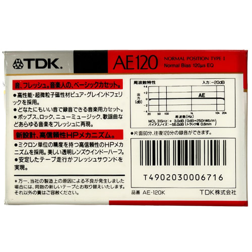 Nová zabalená audiokazeta TDK AE 120 JPN. Vhodná kazeta pro nahrávání.