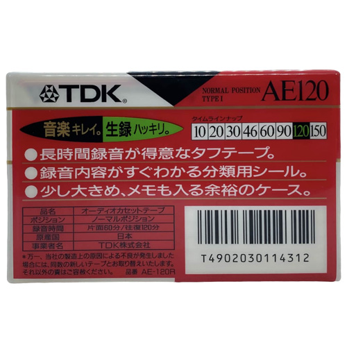 Nová zabalená audiokazeta TDK AE 120 JPN. Vhodná kazeta pro nahrávání.