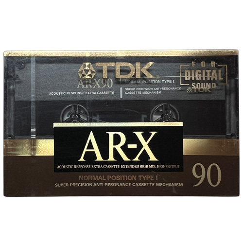 Nová, zabalená sbírková audiokazeta TDK AR-X 90.  Jedna u nejlepších kazet typu normal, vhodná do sbírky nebo na dokonalou nahrávku.
