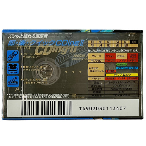Nová, zabalená audiokazeta TDK CDing-II 64. Kazeta typu chrome, vhodná na nahrávání i do sbírky. Japonská verze.