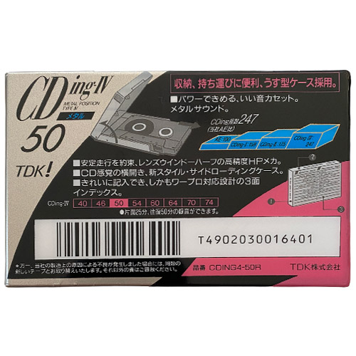 Nová, zabalená audiokazeta TDK CDing-IV 50. Kazeta typu metal, vhodná na nahrávání pro špičkový poslech.