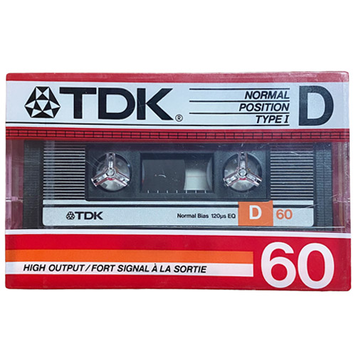 Nová, zabalená audiokazeta TDK D60 (1985-86 US).  Kazeta typu normal, vhodná na nahrávání.