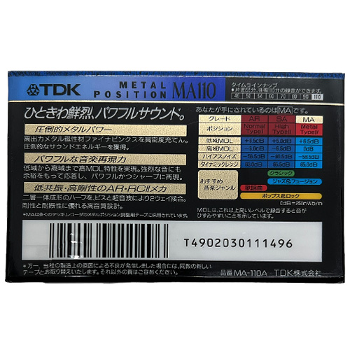 Nová, zabalená audiokazeta TDK MA 110 (1994-97 EU). Vynikající páska typu metal, která Vám zajistí dokonalý zážitek z nahrávky.