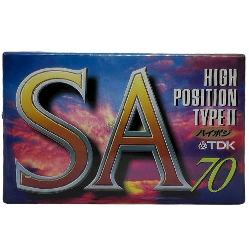 Nová, zabalená audiokazeta TDK SA 70 (1994-97 JPN). Kazeta typu II. Japonská edice, vhodná do sbírky i na nahrání. Pozn.: Malá oděrka na boku kazety, viz foto.