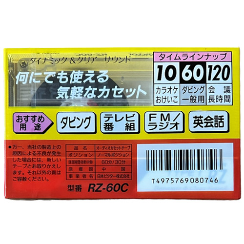 Nová, zabalená audiokazeta VICTOR (JVC) RZ 60. Kazeta typu normal, vhodná do sbírky nebo na nahrání za akční cenu 99,- Kč